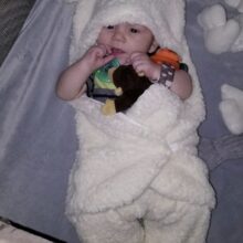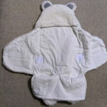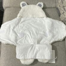 The cute white bear hoodie with a windproof cap design protecting the baby’s ears and keeping them warm stays warm all night. Designed with separate feet, it allows a baby to kick, but cannot be kicked off.
