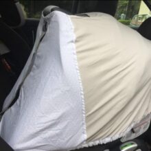 I’ve tried many covers from other brands, but this hands down the best one so far! The frequent problem I had is that it didn’t fit different car seats and was either small or the elastics ripped after a few times. This one however is very durable and fits different seats and carriers. The design is lovely, even though it’s light it washes easily and looks like new. Another thing I like about it is the soft Velcro. The material is breathable and soft, great protection from the sun. The opening is wide enough so I can see my baby through the driving mirror.