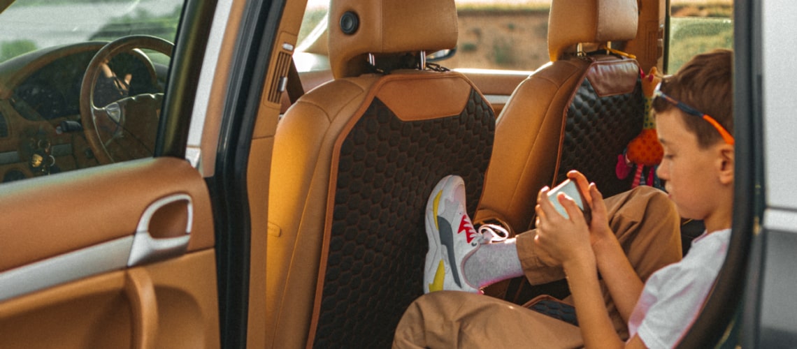 This car kick mat is a mast-have accessory for families who travel by car with kids in the back seat.
