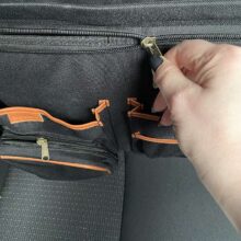 Ten pockets for drinks, toys, snacks and books. A deep internal compartment with a removable divider for clothes and food.