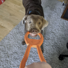 The SodaPup Pull Toy is absolutely the best thing I’ve purchased for our new puppy. She loves to play tug and lights up with enthusiasm whenever we get it out to play, which is multiple times a day. After more than a month of use and abuse the toy has resisted her sharp teeth and is totally intact with no tears or rips. For context, she’s a now a four month old, fifteen pound mini Bernedoodle who can chew like champ, destroying rugs, shoes, or whatever is left in her path. Well done, SodaPup!