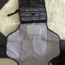 I love this! So easy to use, so handy to have and put on top of fold down changing tables in public. Pockets for nappies and wipes and would definitely recommend to put in your changing bag.